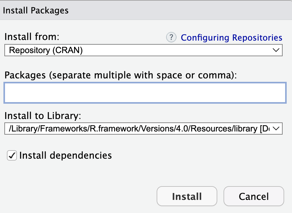 De très nombreux packages ont été développés pour R, ils permettent d’ajouter de nouvelles fonctionnalités. Pour installer un package on va dans Tools -> Install Packages