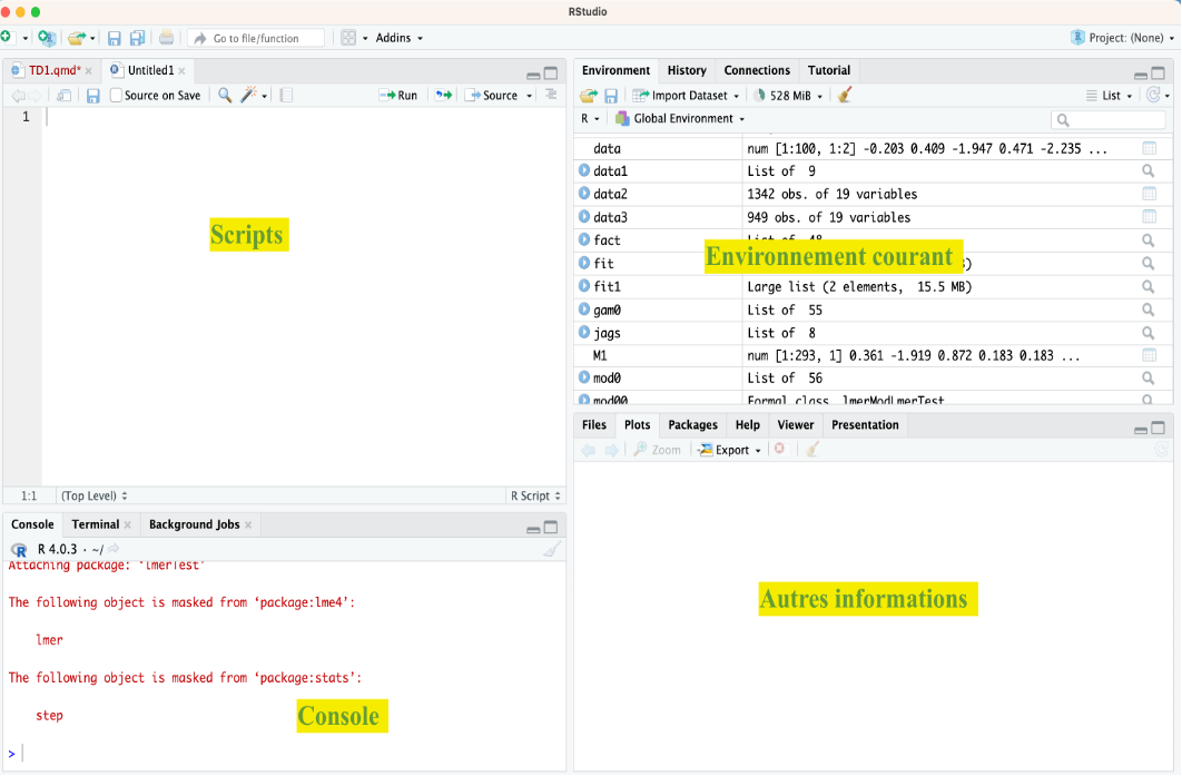 RStudio : interface graphique utilisée dans ce cours.